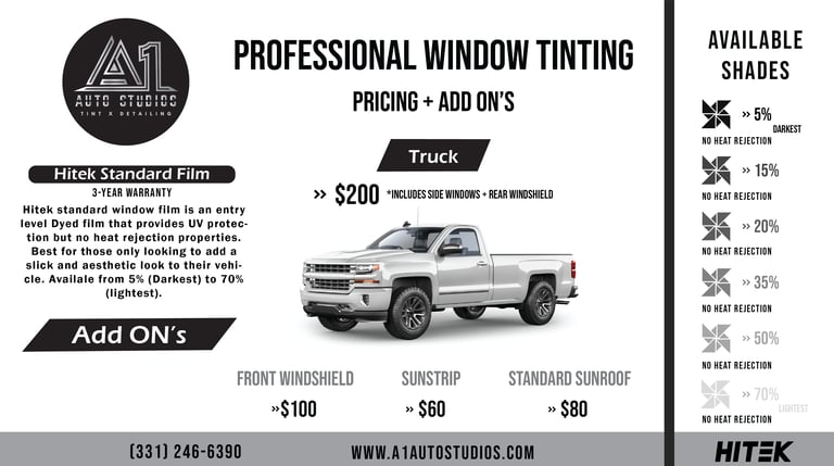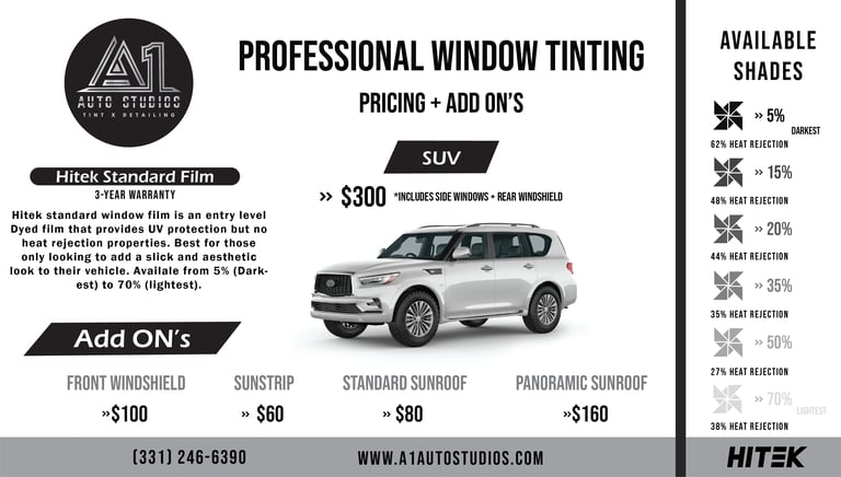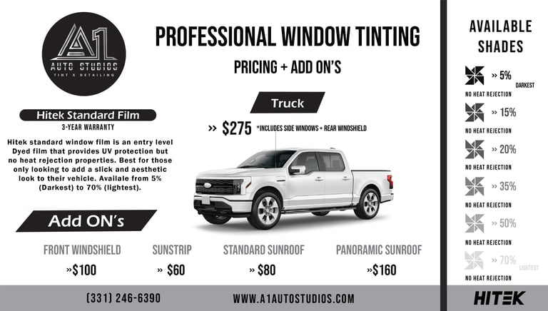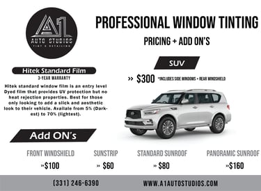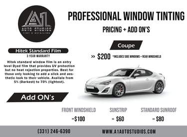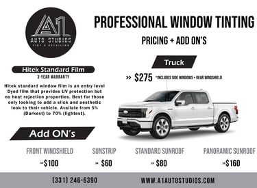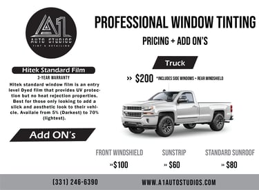 *Also note that this pricing does not include removal of pre-existing window film. Pricing for removals have a flat fee of $60 per hour